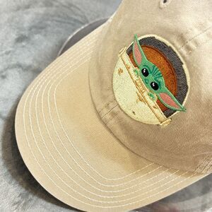 Show off your love for the Star Wars franchise with this Baby Yoda denim cap from Bioworld Disney. The adjustable cap comes in a beige color and features a cute and fun design with the iconic Baby Yoda character. Perfect for any occasion, whether it's for travel or casual wear, this unisex cap is made from high-quality cotton material and is suitable for all seasons. The cap is a must-have for any Star Wars fan and is an excellent addition to any collection. It features a baseball cap style and is made in China with a denim fabric type. Get your hands on this fun and stylish cap today and show off your love for the Star Wars franchise!
