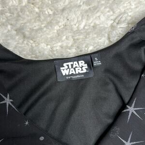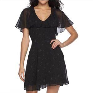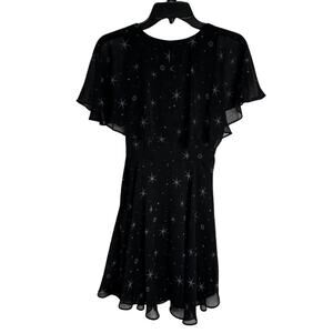 Star Wars Black Flowy Mini Dress Sheer Sleeve Stary Pattern Subtle Neutral