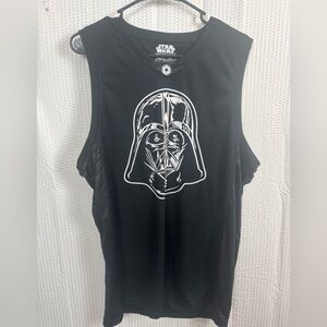 Black tee with iconic Star Wars logo. Comfortable and stylish.