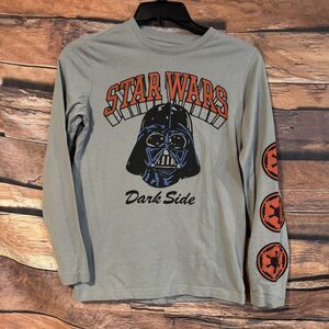Star Wars Boys Darth Vader Dark Side Large Long Sleeve Graphic Tee Gray Empire