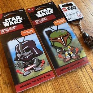 — 2 Star Wars car air fresheners & 1 Star Wars Lego Lego keychain