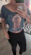 Stylish women's top in a soothing blue shade with a unique graphic design. Perfect for casual outings. Pit to put 15 inches but lots of stretch.