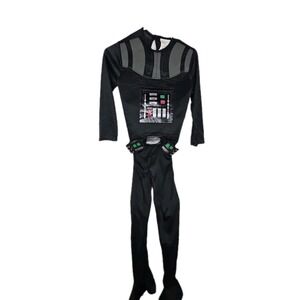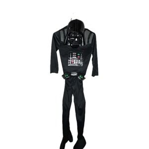This listing is for a pre-owned boys Star Wars Halloween costume. This costume is for Darth Vader boys size small 7-8. This costume includes the jumpsuit, belt, & mask. The overall look of the costume is in good condition. All items are clean and free from flaws. Please see pictures.