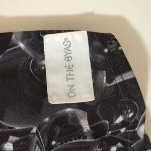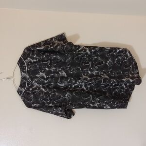 Darth Vader button down baseball jersey. Gray and black with gray piping around the collar and down the front of the shirt. This shirt is unisex. 30" from the shoulder to the bottom of the front part of the jersey, 32" in the back, and 22.5" from pit to pit. Size L. EUC