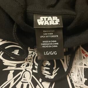 This NWOT Star Wars hoodie features a bold Darth Vader graphic with vibrant red and white logo detail on soft black fleece. Made from a cozy cotton-polyester blend, it’s perfect for layering or everyday fan wear. Kangaroo pocket, drawstring hood, and ribbed cuffs provide comfort and style.