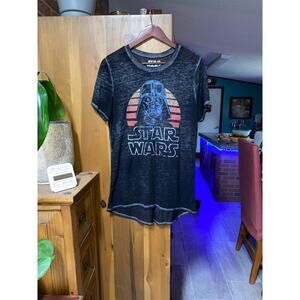 Star Wars Darth Vader Retro Sun/Moon Burnout sheer Black T-Shirt Women’s Size XL
