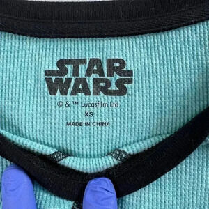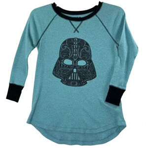 Darth Vader Star Wars womens sleep set XS sleepwear waffle knit lounge set Fifth Sun teal and black baseball sleeves Lucas Film comfy loungewear sleepwear gift fan apparel