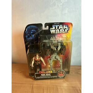 This Star Wars Deluxe Han Solo Power of the Force 1996 Kenner Action Figure is a must-have for any fan of the franchise. With its original packaging and unopened box, this vintage item is a rare find for collectors. The figure is made of durable plastic and has a scale of 1:18, making it a perfect addition to any action figure collection.