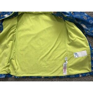 The Star Wars Disney Store Rain Coat is a stylish and practical outerwear option for young fans of the iconic franchise. Made from 100% polyester with a lining of 100% cotton, this coat features long sleeves, a full zip closure, and a hood for added protection. The design showcases beloved characters such as Darth Vader, C3P0, Chewbacca, R2D2, and Yoda, making it a must-have for any Star Wars enthusiast. With its blue color and accents like zipper pulls and stormtrooper zipper, this rain coat is a fun and unique choice for the winter, fall, and spring seasons.