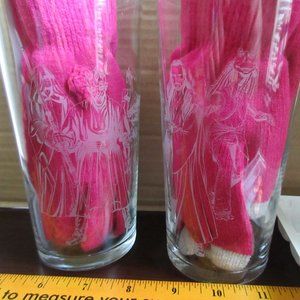 These are 16 oz. beverage glasses that feature the Star Wars and Pepsi logos on one side and an array of three characters on the reverse of each glass - one with the good guys and one with the bad guys.