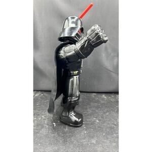 Unleash the power of the Dark Side with this awesome Star Wars Galactic Heroes Mega Mighties Darth Vader 10-inch action figure. This imposing figure from Hasbro brings the iconic Sith Lord to life in a larger scale, perfect for younger fans or collectors seeking a more stylized interpretation of the galactic villain. Command your own Star Wars adventures and recreate classic scenes with this impressive Darth Vader figure. This specific listing is for the Darth Vader 10-inch action figure, complete with its signature cape. The figure features articulated arms, allowing for dynamic posing and engaging play. Whether defending the Empire or engaging in a lightsaber duel (lightsaber not included), this Mega Mighties Darth Vader is ready for action. It's a fantastic addition for any Star Wars enthusiast looking to expand their Galactic Heroes collection or introduce new fans to the epic saga. Please note: This Star Wars Galactic Heroes Mega Mighties Darth Vader 10-inch action figure is in Used condition. It is the action figure with the attached cape. Review all provided images carefully to assess the item's condition. This Hasbro figure is a must-have for those who appreciate the Mega Mighties line and the legendary Darth Vader.