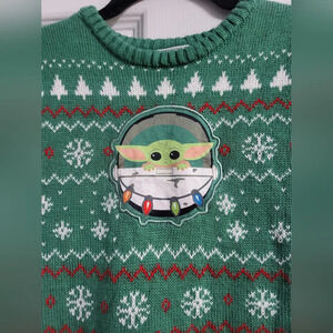 star wars Christmas sweater Yoda Faux Fur party ugly sweater sage green