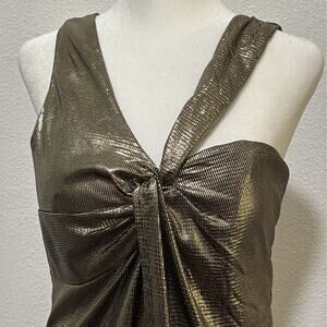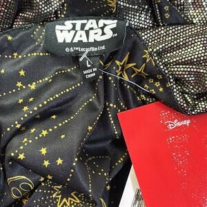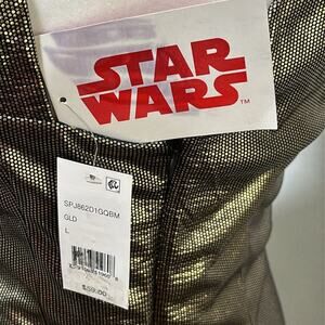 Star Wars Gold Metallic dress. Faux wrap. Shoulder straps. Gather at Bust. Slightly padded bust. Back Zipper. Size Large. New