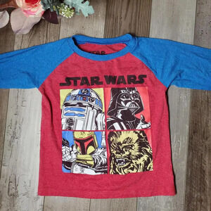 Star Wars Graphic Raglan Long Sleeve T-Shirt Blue Red Boys Size Medium 5/6 EUC