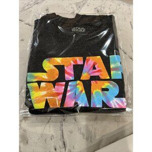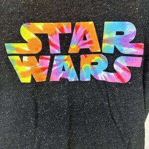 Star Wars Graphic Tee Women’s S Black Rainbow Tie Dye Logo T-Shirt Disney Lucasf