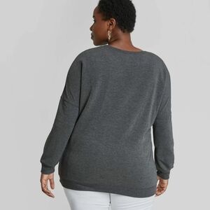 Cozy gray sweater featuring The Mandalorian design. Crew neck style. Perfect for fans.