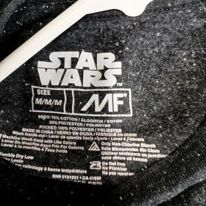 Star Wars gray t-shirt featuring a blue pocket and graphic design.
