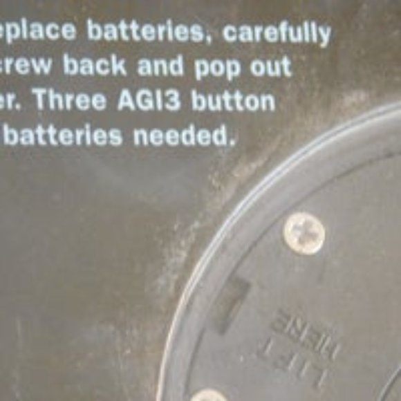 The plastic on the bottom is torn off. Complete with pop ups and music. Takes three AG13 button cell batteries. Batteries not included.