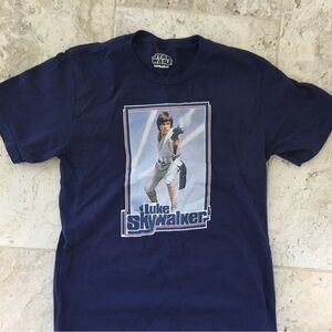 This Star Wars kids' t-shirt features a classic Luke Skywalker design. Perfect for young fans, this navy blue shirt offers comfort and style.