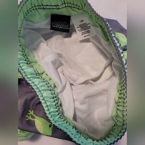 Adorable Star Wars rashguard set with Baby Yoda and frog design. Features green and gray colors. Perfect for young fans.