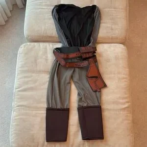 - Comes with belt, shirt, and cuffed pants