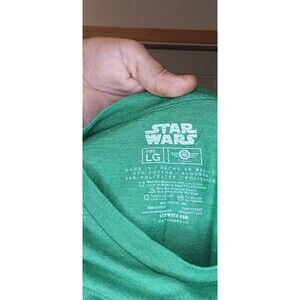 This Star Wars Kids T-Shirt in size LG features a green design with the iconic Darth Vader logo and a 4 leaf clover motif. The unisex kids' shirt is perfect for any young fan of the Star Wars franchise, offering a fun and stylish way to showcase their favorite character. The unique combination of characters and themes make this t-shirt a must-have for any Star Wars enthusiast's wardrobe.