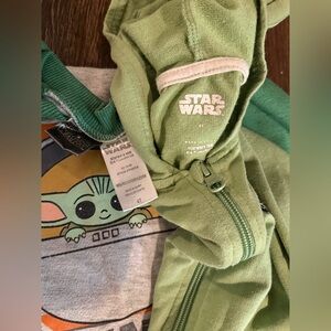 Star Wars set with Baby Yoda designs. Hoodie and shorts are 5T and T-shirt and sweater at 4T