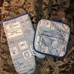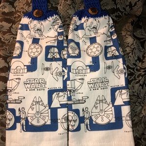 Comes with 2 crochet hanging towels, 1 oversized oven mitt and 1 potholder