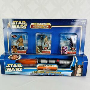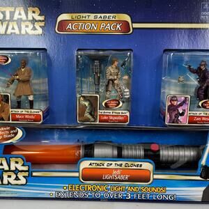 Star Wars LightSaber Action Pack W/Orange Jedi Saber & 3 Figures: Zam Wessel, Luke Skywalker-Bespin Duel & Mace Windu-Geonoshian Rescue Sams Club Exclusive set. Toy is unopened. See pics for overall condition.
