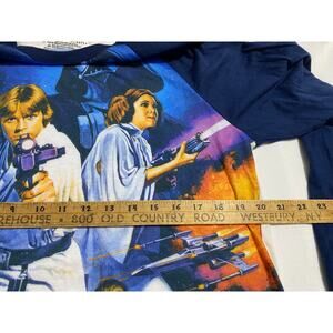 Officially licensed Star Wars long sleeve men’s tee featuring bold character graphics of Luke Skywalker and Princess Leia. Classic black or charcoal base (see photos) with full-color print across the chest. Soft cotton blend with ribbed cuffs and crew neck. Tagged size Large. Pre-owned, excellent condition. A must-have for fans of the original trilogy and vintage Star Wars apparel.