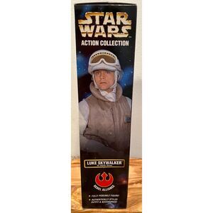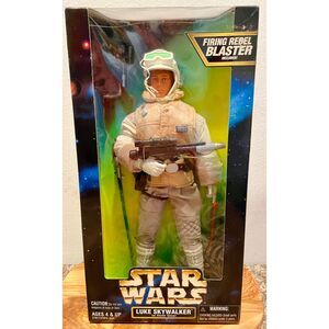 This 12" action figure of Luke Skywalker in his Hoth gear is from the 1997 Kenner Star Wars line. It is in great condition, never removed from the box. The figure comes with a blaster and a snowspeeder pilot helmet.