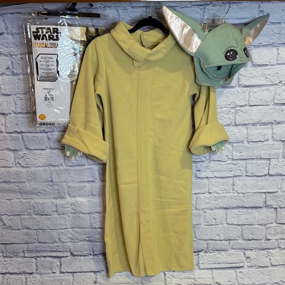 Mandalorian outfit with a charming Baby Yoda hat. Ideal for Star Wars enthusiasts. For 5-7 year old.
