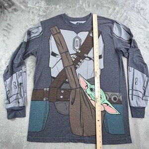Star Wars Mandalorian Shirt Men Large Gray Baby Yoda Mad Engine Long Sleeve AOP