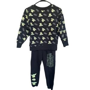 Star Wars Mandalorian Sweatsuit Kids Medium Black Baby Yoda 2 Piece