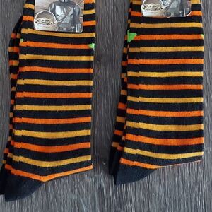 Lot 2 Mandalorian Baby Yoda Black & Orange Stripe Mens Socks Size 6.5-12