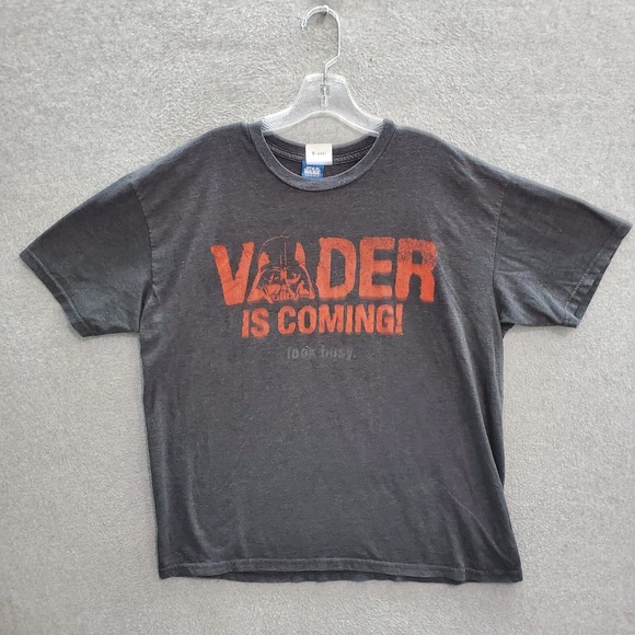 Star Wars Men T-Shirt XL Gray Vader Is Coming Look Busy Short Sleeve Crew Neck