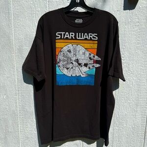 Star Wars Men’s Retro Rainbow Millenium Falcon Cotton Black T-shirt 2XL