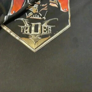 Black with Gold, Silver & Orange Graphic on front of shirt