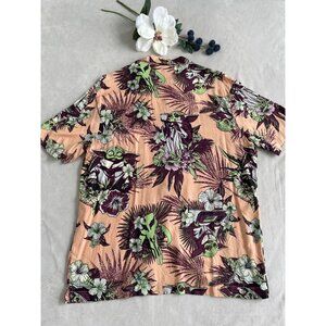 Star Wars Mens XL Hawaiian Shirt Grogu Baby Yoda Floral Print Peach & Green