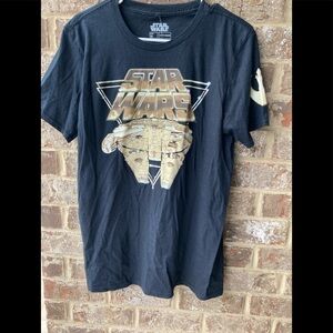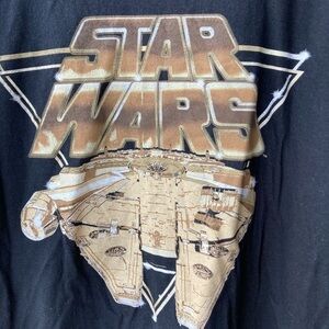 Star Wars millennium falcon T-shirt size medium new with tags. 100% cotton. Armpit to armpit measures 19 inches. Shoulder to hem line measures 28 inches.