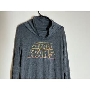 Star Wars Mock Neck Hoodie Size L Gray Women's Long Sleeve Logo Loungewear Soft