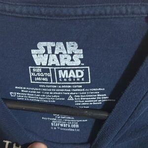 Navy t-shirt with Mandalorian graphic. Ideal for fans.