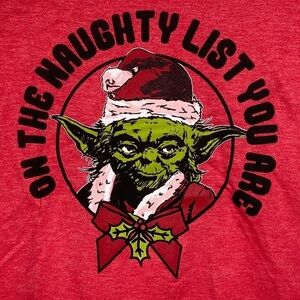 Star Wars Yoda “On The Naughty List You Are” Screen Print Red Short Sleeved Shirt