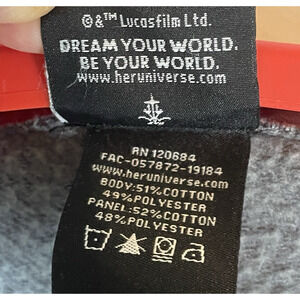 Star Wars Our Universe Dark Side Sith Legion Gray Sweatshirt Mens Size XL. Graphic zip pocket on front has Kylo Ren's helmet, "Followers of the Dark Side", "Sith Legion", "First Order" and "Crush the Resistance" in black and white. Kangaroo style pocket that also has an additional zipper pocket. Clean pre-owned condition. Light wash wear. There are areas that look like the gray has faded lightly (mostly around hems and seams), but I don't know if this is intentional or just part of the wash wear. Other than this, there is no significant wear. Review photos carefully for measurements and all other details.