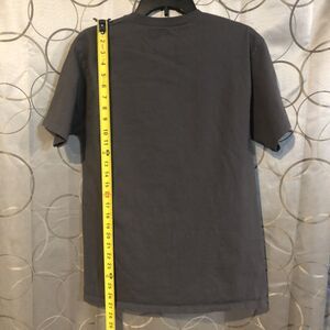 Color & Material: The shirt is a medium or dark gray color and is made from a comfortable cotton blend fabric.