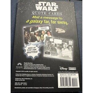 The Star Wars Quote Cards by Editors of Thunder Bay Press is a trade paperback book containing 40 pages filled with iconic quotes from the Star Wars franchise. Each card serves as a postcard or sticker, perfect for fans to enjoy and share. Published in 2019 by Printers Row Publishing Group, this activity book is a delightful addition to any Star Wars enthusiast's collection, offering a mix of humor, science fiction, and space opera themes. With dimensions of 7.5 x 5.2 inches and weighing 7.3 ounces, this book is a fun and engaging way to explore the world of Star Wars through memorable quotes.