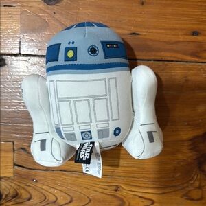 Adorable R2-D2 plush from Star Wars. Features iconic blue and white details. Preowned. Does have a sound piece inside but no longer works.