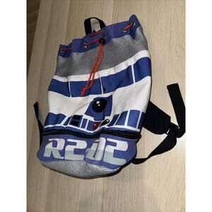Star Wars R2-D2 Drawstring Backpack School Bag Gray/Blue/White Mesh Zippers