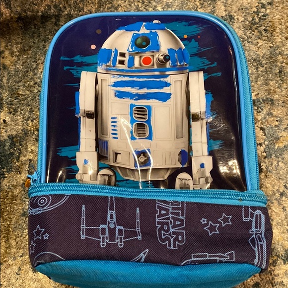 Star Wars lunch bag featuring R2-D2 design. Blue and white colors.