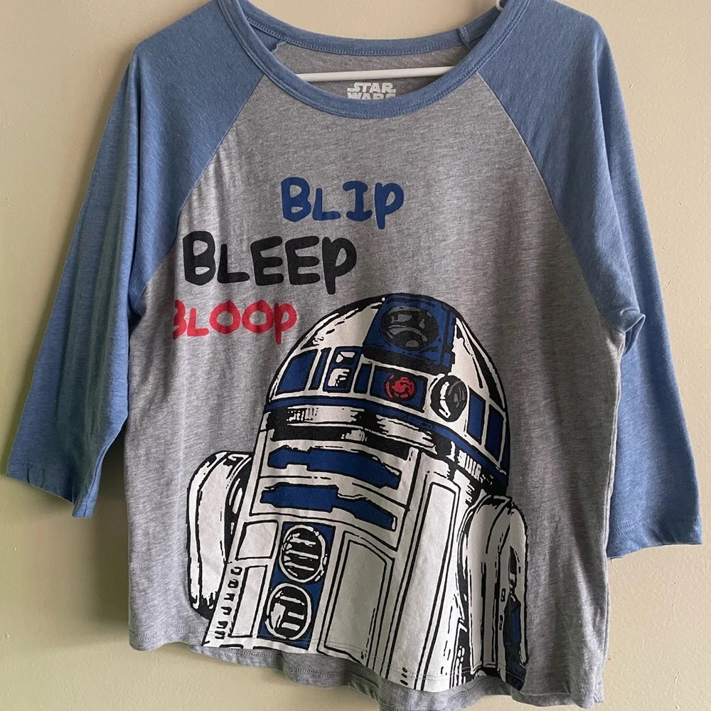 Pre-loved. Star Wars R2-D2 Raglan graphic shirt. In good condition. Measurements: pit to pit 20’, length 23 1/2’.